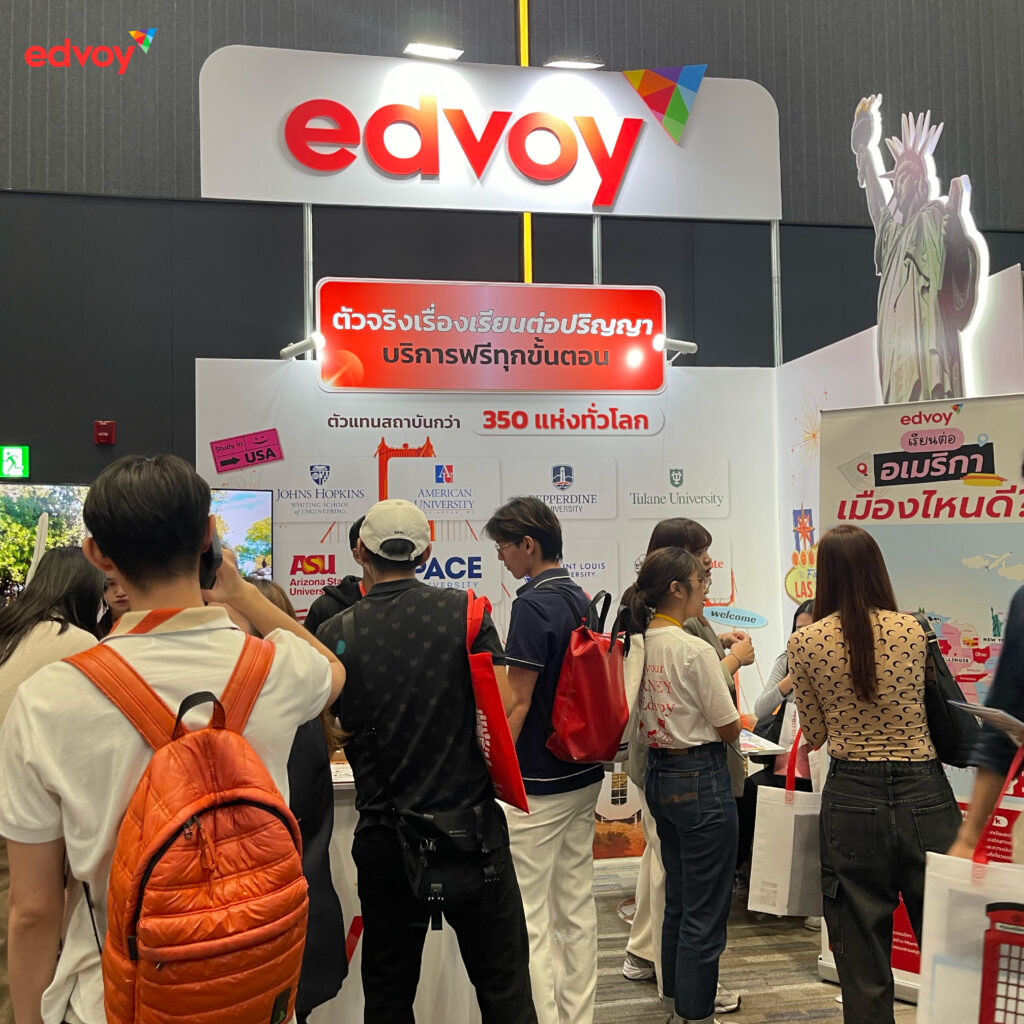 แวะมาที่บูธของเราเพื่อค้นหาตัวเลือกการเรียนต่อ รู้จักทุนการศึกษาที่เหมาะกับคุณ และรับคำแนะนำส่วนตัวจากทีม Edvoy ให้เราเป็นพาร์ตเนอร์ที่คุณไว้ใจ ในการเริ่มต้นเส้นทางการศึกษาระดับโลกของคุณไปด้วยกัน! 🌏💙